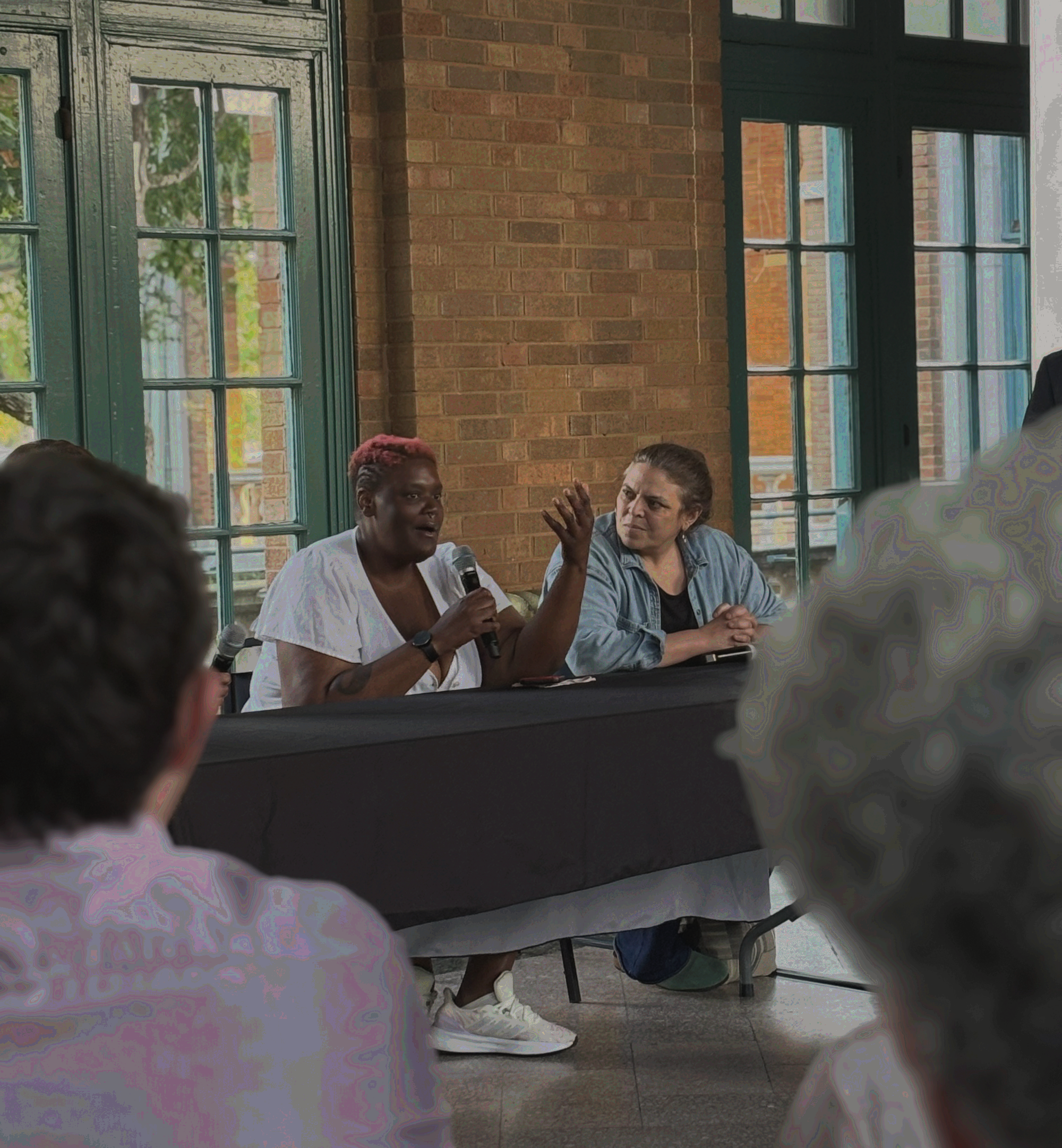 “¿Tu realmente crees que la gente se quiere sentar por ahi cuando ya entienden a la policia y sus polizas fuera de control y piensan ‘Si, ese es un lugar seguro para mi’? Ni siquiera es un lugar seguro para cuando te estan persiguiendo – ¿crees que te vas a poder refrescar ahi?” dijo Rachel Williams, miembro del Colectivo de Doulas en Chicago que vive en el área Roseland/Pullman. “Tenemos uno de los hospitales más sucios, pero la gente entiende que si also sale mal, tienen que ir ahi para refrescarse. Tenemos que ser intencionales al construir instituciones...La mayoría de vecindarios negros y de color tienen una plétora de iglesias. ¿Acaso todas estan funcionando? ¿Estan seguros de tener ventilación? Me acuerdo que cuando tenia cuatro años en el ‘95 yo iba a las iglesias para refrescarme. Eso significa investir en espacios que parezcan improbables – no solo para el servicio de los Domingos, pero para cuando la gente lo necesite.” Williams fue una de las cuatro mujeres hablando en el panel aquella tarde.