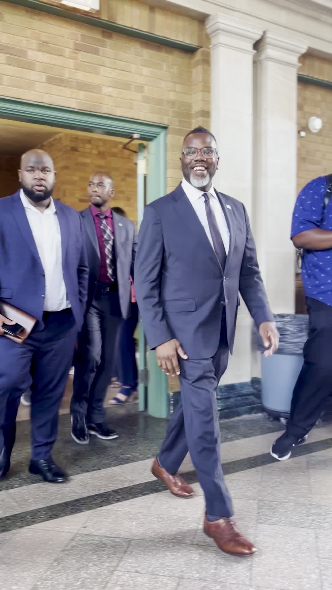 Izquierda: Alcalde Brandon Johnson llega al Refectorio en el Parque Columbus. Derecha: Angela Tovar, Commisionara y Jefa de Sustentabilidad del Departamento del Medio Ambiente de Chicago dándole la bienvenida a Brandon Johnson. | NaBeela Washington/15 West