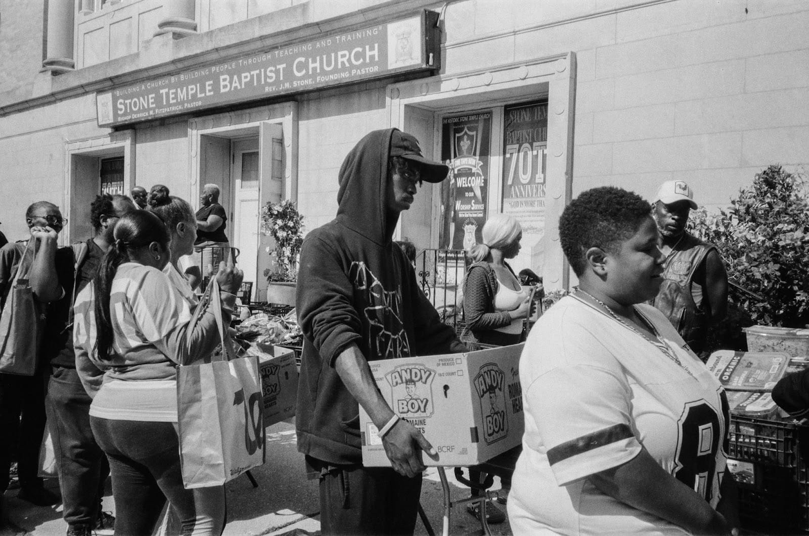 One of those acts of care takes place in the church’s food distribution events. On any given week, the steps and sidewalks outside Stone Temple are filled with boxes of fresh produce, pantry staples, and hot meals waiting to be handed out. Volunteers move quickly yet tenderly, greeting families and neighbors by name.